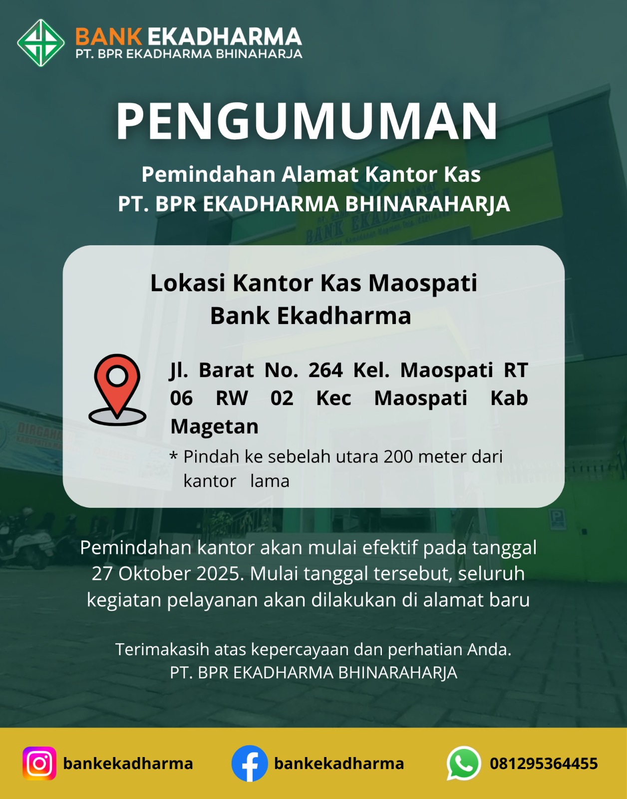 Pelayanan Terbatas Bank Ekadharma pada 31 Mei 2025