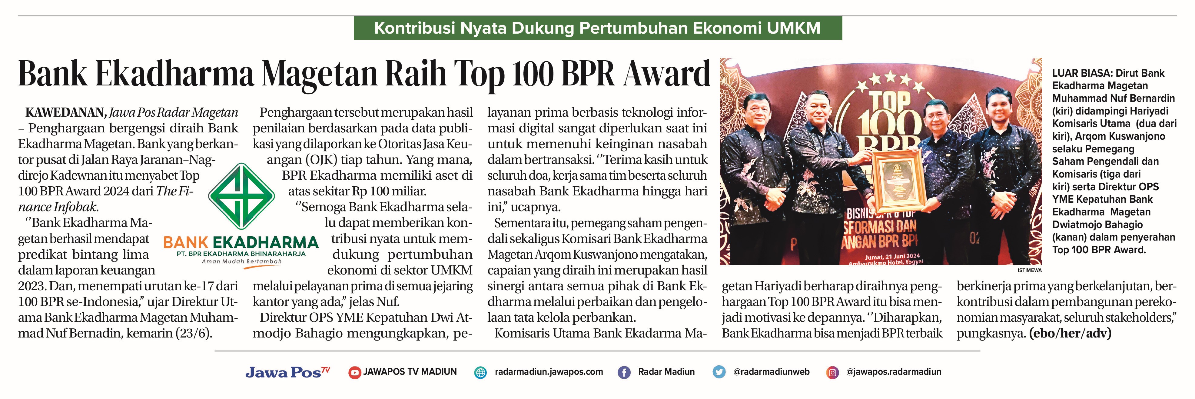 SelengkapnyaBank Ekadharma menyabet Top 100 BPR Award 2024 dar..